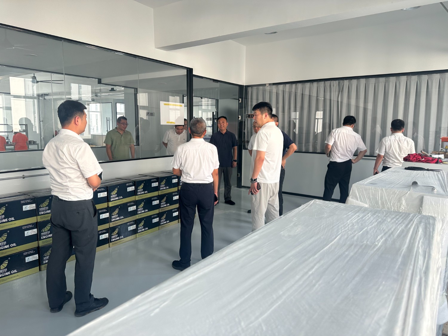 李兵董事長一行首先深入工廠生產車間,了解我司產品生產流程、加工工藝流程及設備運行情況。隨后到達我司實驗車間,了解我司在技術研發(fā)方面所取得的階段性成果及未來發(fā)展方向。我司總經理姜浩匯報了工廠近期狀況,以及產品銷售情況。